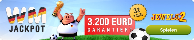 Die Fussball WM dauer 32 Tage, deshalb gibt es im selben Zeitraum ein Jewels 2 – Jackpot Turnier, das es in sich hat. Dotiert ist der Topf mit 3.200 Euro! Für ein Casual Game ist das schon ein enormes Preisgeld, und dieser Betrag könnte sogar noch steigen. Dass die Fussball WM natürlich auch die Anbieter von Online Spielen nicht kalt lässt, ist klar, und M2P Games schon gar nicht.